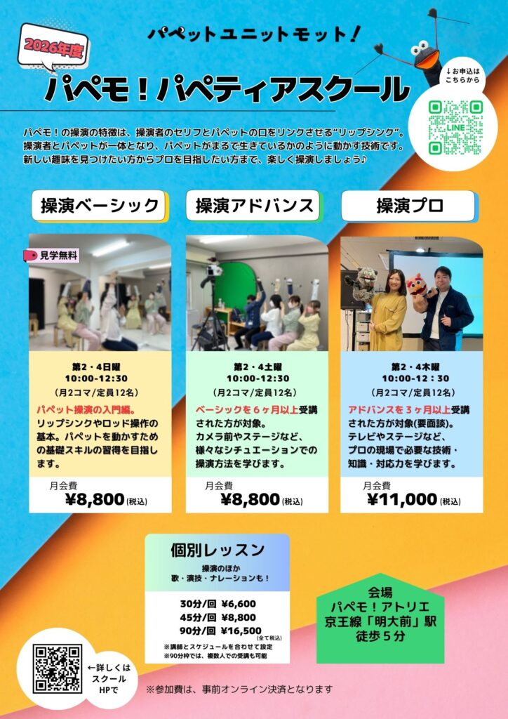 現場で活躍できるプロのパペティアになるため、日本で唯一(おそらく)のパペティアスクールで学びませんか?
